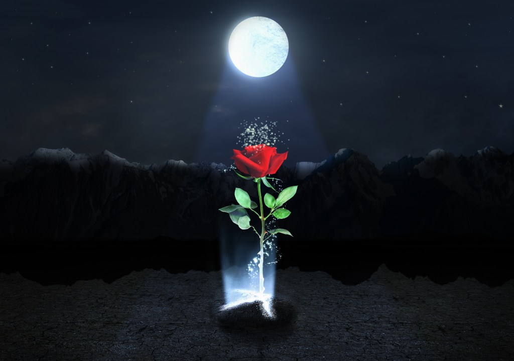 When this choice of fear over faith and trust in God persists in a person’s life, the magic rose will wilt and the gift of eternal life that it longs to bequeath to everyone is forgotten, lost, and withdrawn. All that remains, then, is a cold, dark, lifeless mountain in a sad, faraway land.
